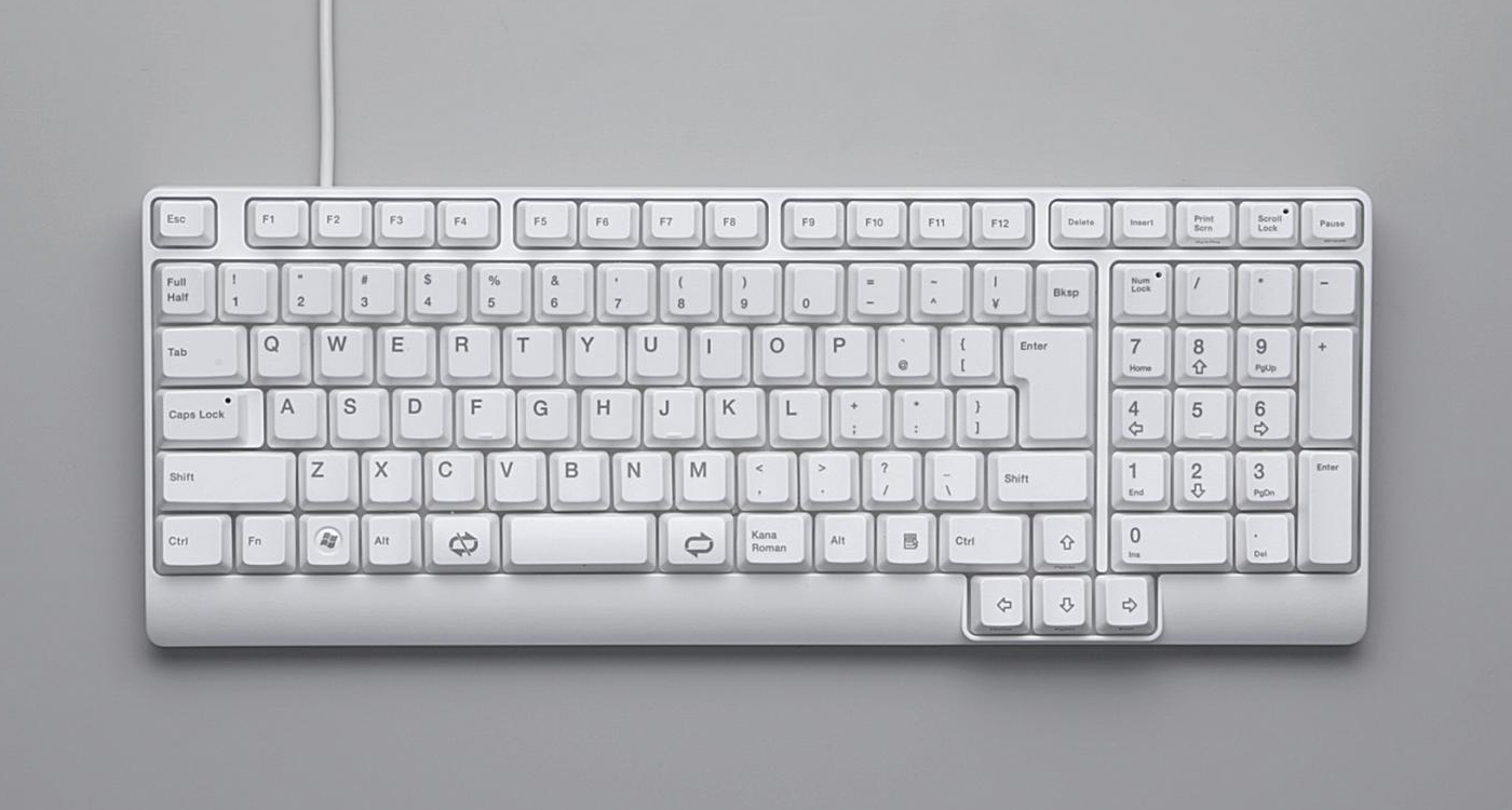 日本語キー配列ながら、キートップからカナ表記をなくした英字表記のフルキーボード、タッチタイプを取得した達人やローマ字入力専門の方にピッタリ。英語表記だけのシンプルなキートップで視認性も向上 |