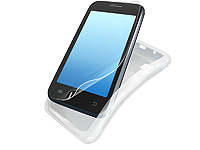 “GALAXY S”専用モデルとしては、ソフトケースもラインアップ。耐久性と弾力性を合わせ持つポリウレタン製のケースと液晶保護フィルムがセットになっています。 |