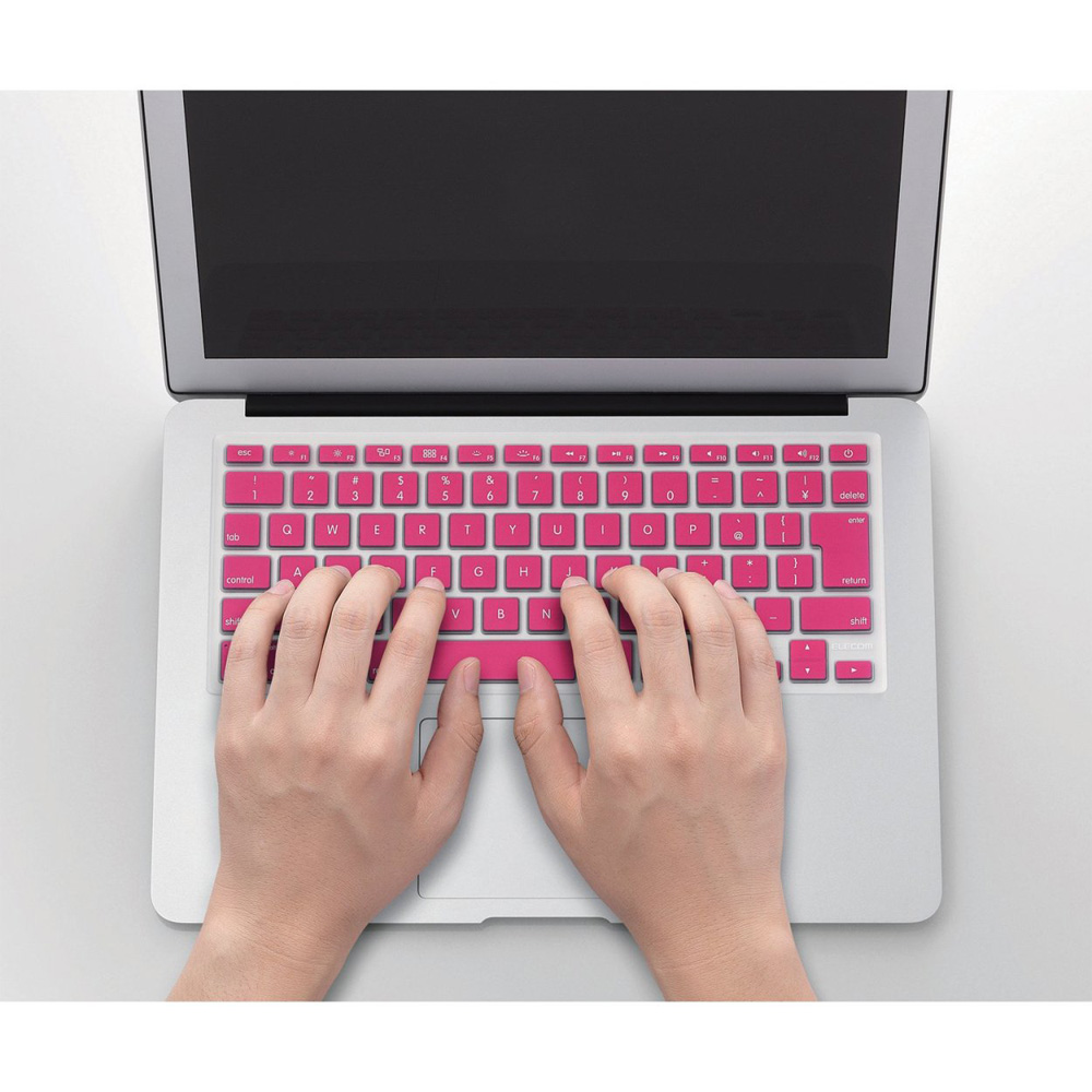 MacBookのキーボードを汚さず、いつまでもキレイに使いたいという方のために、キーボードカバー“PKC-MACB10Cシリーズ”の登場です。パソコンのアクセサリーも自分好みのカラーでコーディネートしたいという方のために、クールなブラック、ビビットなピンク、MacBook本体に合わせたグレーの3色をラインアップしています。MacBookのキーボードを汚れやホコリから保護するうえ、お好きなカラーで本体のカラーとのコーディネートをお楽しみいただけます。キーボードカバーを装着するだけで、いつものパソコンが違った雰囲気のデザインに早変わりします。