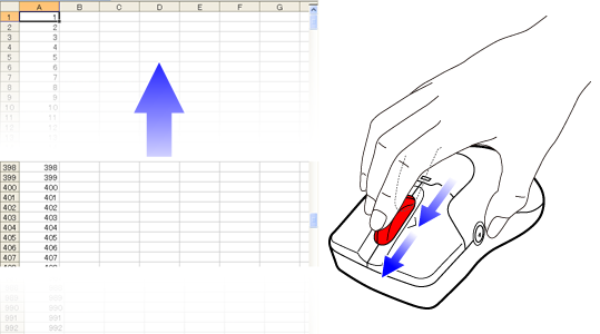 ※チルトホイールを逆方向に少し回転させると、高速スクロールが止まります。
