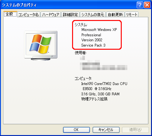 −[システムとセキュリティ]−[システム]をクリックして確認してください。
