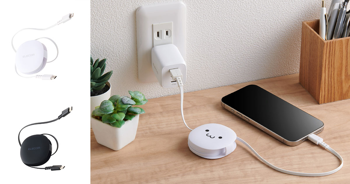シュルッと収納、絡まずすっきり!手のひらサイズのケースで、持ち運びに便利な約90cmの巻き取りケーブルを新発売