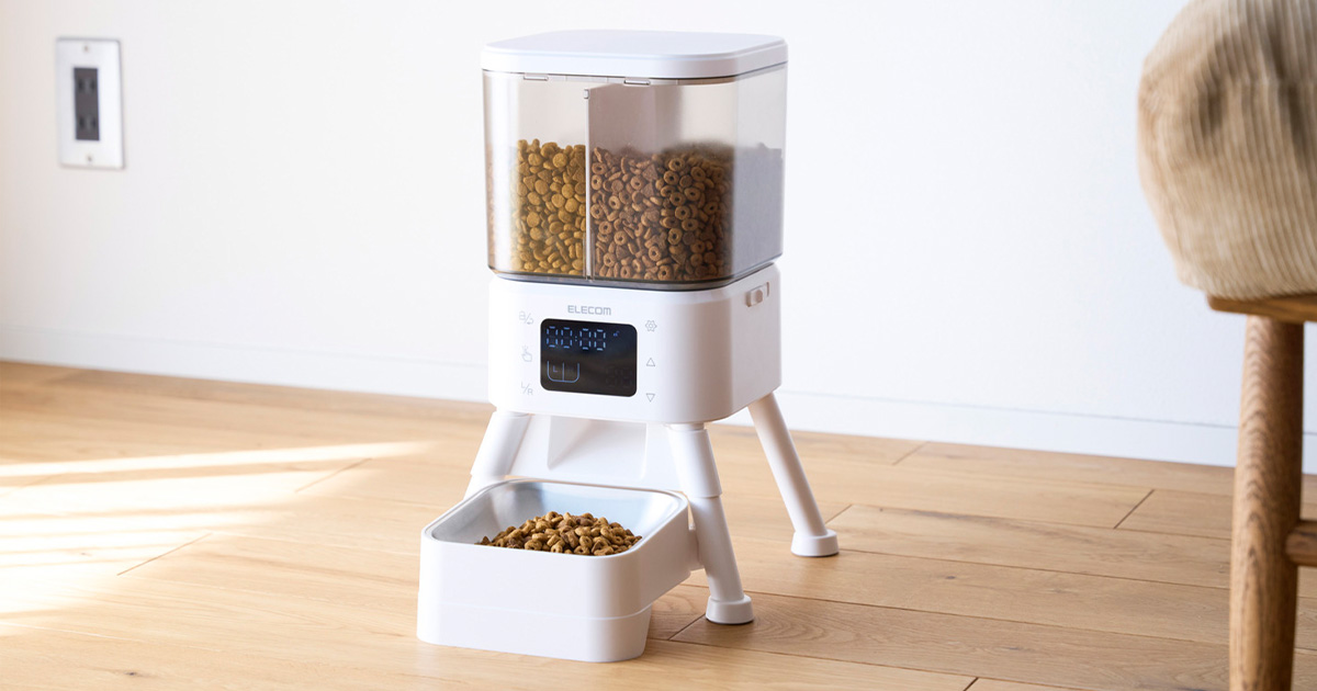 不在時も2種類のフードをあげられる!健康管理やちょっとしたご褒美にもぴったりなタイマー式自動給餌器を新発売
