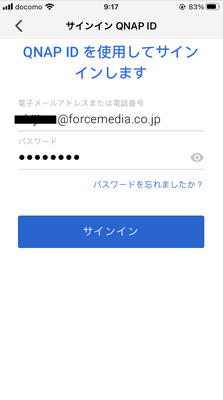 4. myQNAPcloudアカウント(メールアドレス)とパスワードを入力してサインインする