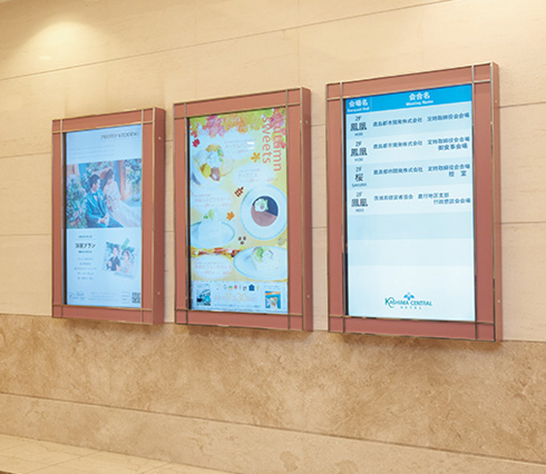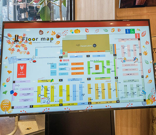 - 館内のイベントやギフト商品を訴求力の高い動きのあるサイネージで宣伝