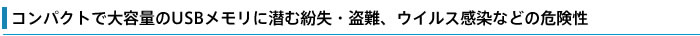 | 社内ネットワークのPCのウイルス対策だけでは万全ではありません。あらゆる場所でウイルス感染の危険にさらされているUSBメモリをウイルス対策することで、より安全が確保されます。 | ||||||