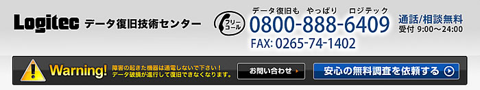 | 初期調査の結果、想像していた価格よりも安く、迅速にデータ復旧を行っていただきました。今ではお礼という意味も含めて、ロジテックのデータ復旧サービスの紹介(アフィリエイト)を当社のホームページで実施しています。その他、調査報告にはディスクの経年劣化(不良セクタ)や複数のウィルスに感染も確認されたとのことで、データの納品時にはウィルスチェックと駆除までしていただきました。現状のサービスで充分満足していますが、今後はデータ消失前後でのリスクヘッジなどのサポートを充実していただければ嬉しく思います。 |