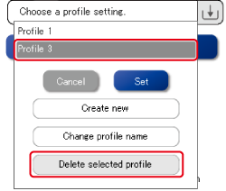 - Select the profile name you want to delete and click the [Delete selected profile] button.