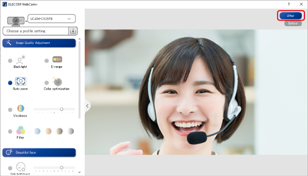 If a ELECOM web camera is connected, model name is displayed on the screen.- If there is only one web camera connected to the computer, that web camera will be selected.