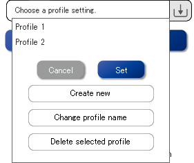 Click the button to display a pull-down menu of saved settings.