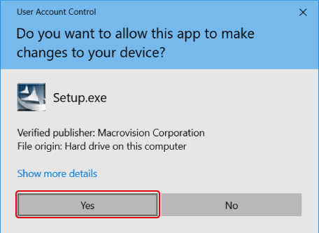 - When the "User Account Control" screen is displayed, click the [Yes] button.