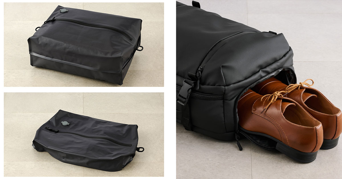 出張や旅行に役立つトラベル用品がエレコムから!専用の独立ポケットで靴を気持ちよく運べるバックパックとかさばる衣類をすっきりまとめる圧縮袋を新発売