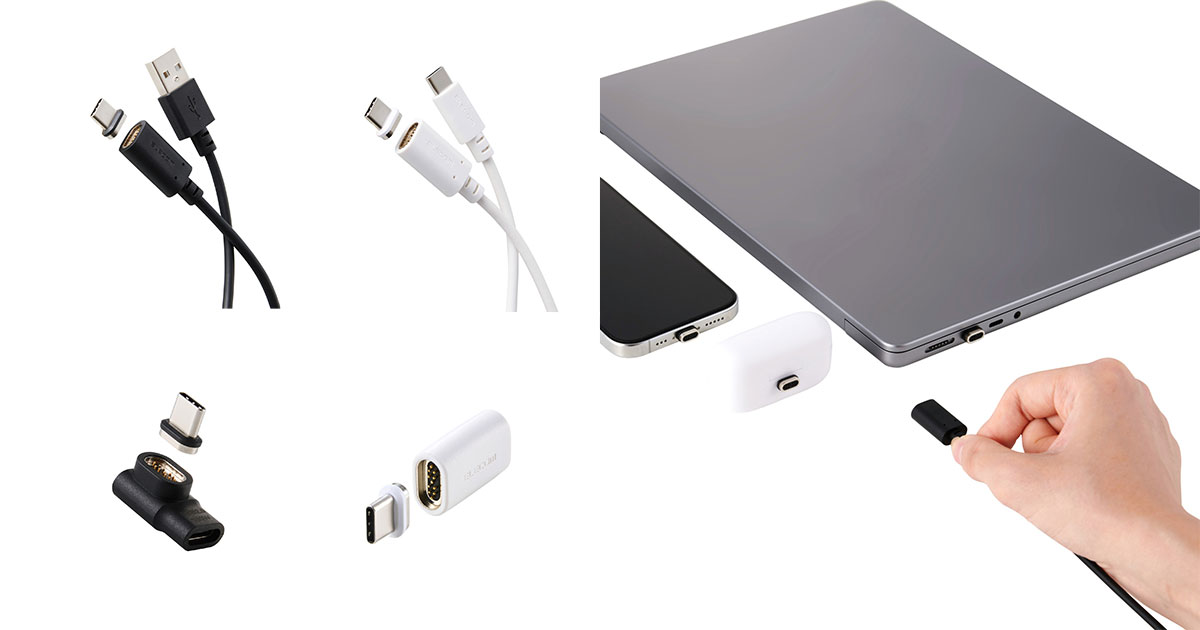 抜き挿しによるポートの負担や摩耗を防ぐ!マグネットコネクターで着脱が簡単な"ピタッとマグネット"ケーブルやアダプターを新発売