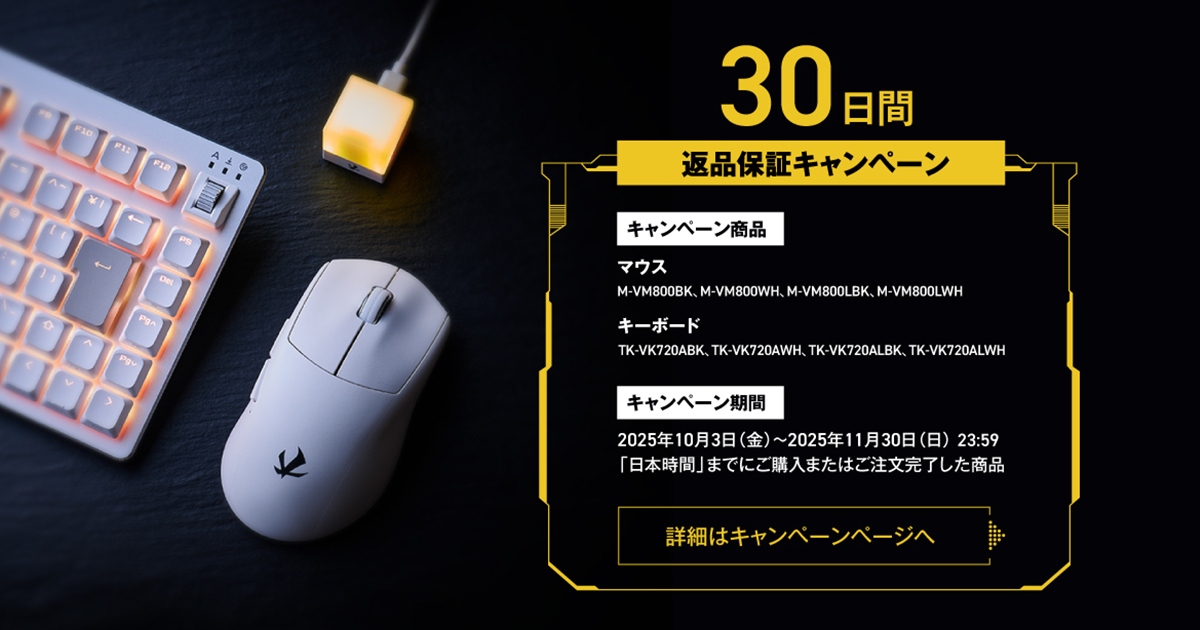 V customシリーズ 返品保証キャンペーンを実施 最新のゲーミングマウスとゲーミングキーボードが対象 ご自身のゲーミング環境で、ぜひお試しください