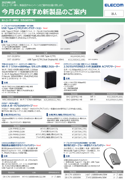 mail:e-maga@elecom.co.jp 免責事項「ELECOM Mail News!」のコンテンツには細心の注意を払っておりますが、その内容について保証するものではなく一切の責任を負いかねます。 製品に関するお問い合わせ