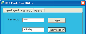 付属のソフトウェア「USB Flash Disk Utility」を使ってパスワードによるデータの保護が可能
