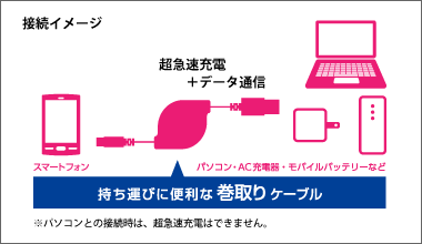 パソコンのUSBポートに接続した場合、超急速充電はできません。 |