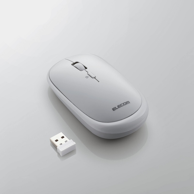 カチカチというクリック音がしない静音タイプで、Webブラウザの「戻る」操作をマウスのボタンで操作できる4ボタン仕様です。別途ソフトウェアを使ってボタンの割り当て変えることでスライド送り・戻しなどができるプレゼンテーションモードも利用できます。