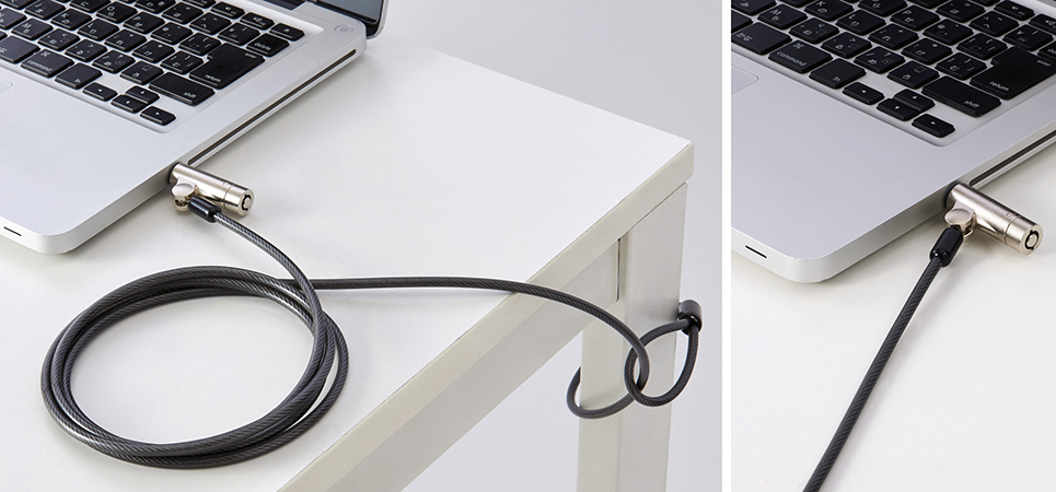 近年、薄型ノートパソコン・液晶モニタ・タブレットなどの様々なデバイスを一人で使い回すことも増えてきました。また、テレワークの推進で一層セキュリティ対策が求められるようになっています。そこで、1つのセキュリティワイヤーで既存のスロットサイズすべてに対応できる、マルチタイプのセキュリティワイヤーを利用すれば、簡単お手軽に盗難対策ができます。