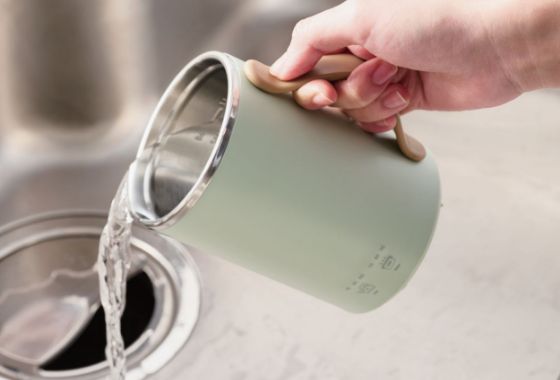 ■デスクに置いても邪魔にならないコンパクトサイズで、1杯分(350ml)だけお湯を沸かしたり飲み物を淹れたりするのにも最適です。