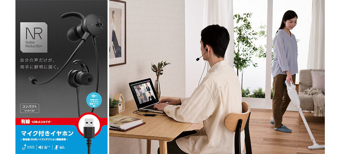 「VGP2022 SUMMER」のテレワークデバイス(オーディオ関連機器)部門において部門賞を受賞したデュアルマイクノイズリダクション有線ヘッドセット「HS-HP101UNCBK」の追加モデルとして、新たに3種類の製品をご用意しました。髪型の乱れを気にせずに装着できるカナルタイプは、通話中も周囲の音を確認できる片耳タイプと、会議に集中できる両耳タイプをご用意しています。