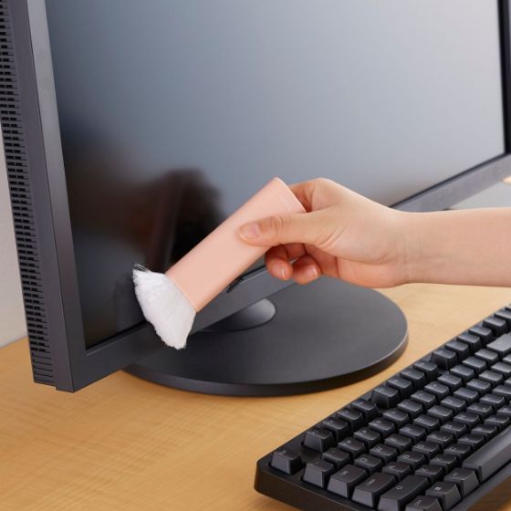 指紋もホコリも掃除できる2Wayタイプのクリーニングブラシ&クロス、マグネット内蔵ちりとり&デスクブラシ、マグネット内蔵折りたたみブラシの3タイプで、用途に合わせてお選びいただけます。コンパクトで持ち運びにも便利で、デスク周りの邪魔になりません。本体カラーにはオフィスに馴染むニュアンスカラーを採用しています。