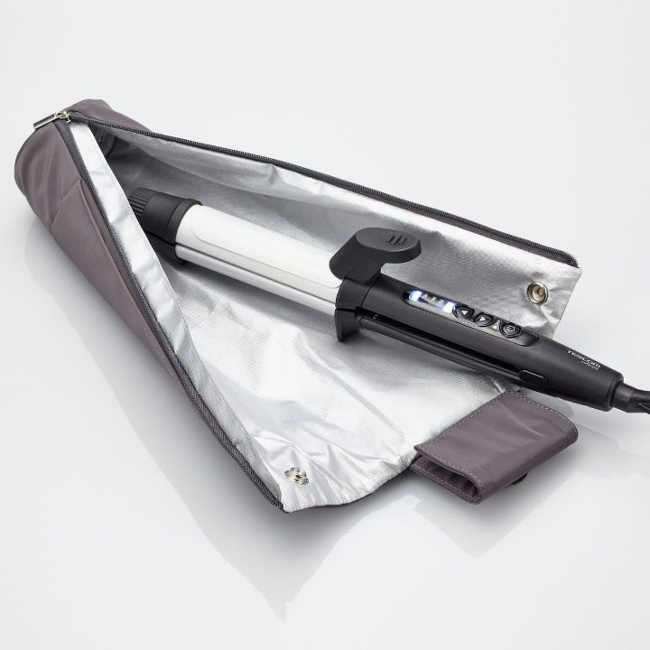 また、側面ファスナーを開くとシート状になり、洗面台や机でもスタイリング中のヘアアイロンの一時置きにも活躍します。