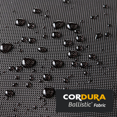 本体外装生地に、引き裂き強度に優れ、高い耐摩耗性と耐久性を備えたCORDURA® Ballisticファブリック※1を採用しています。