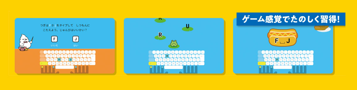 ▲ ホームポジションの確認やタッチタイピングまで、キー入力の基礎を楽しく学習できます