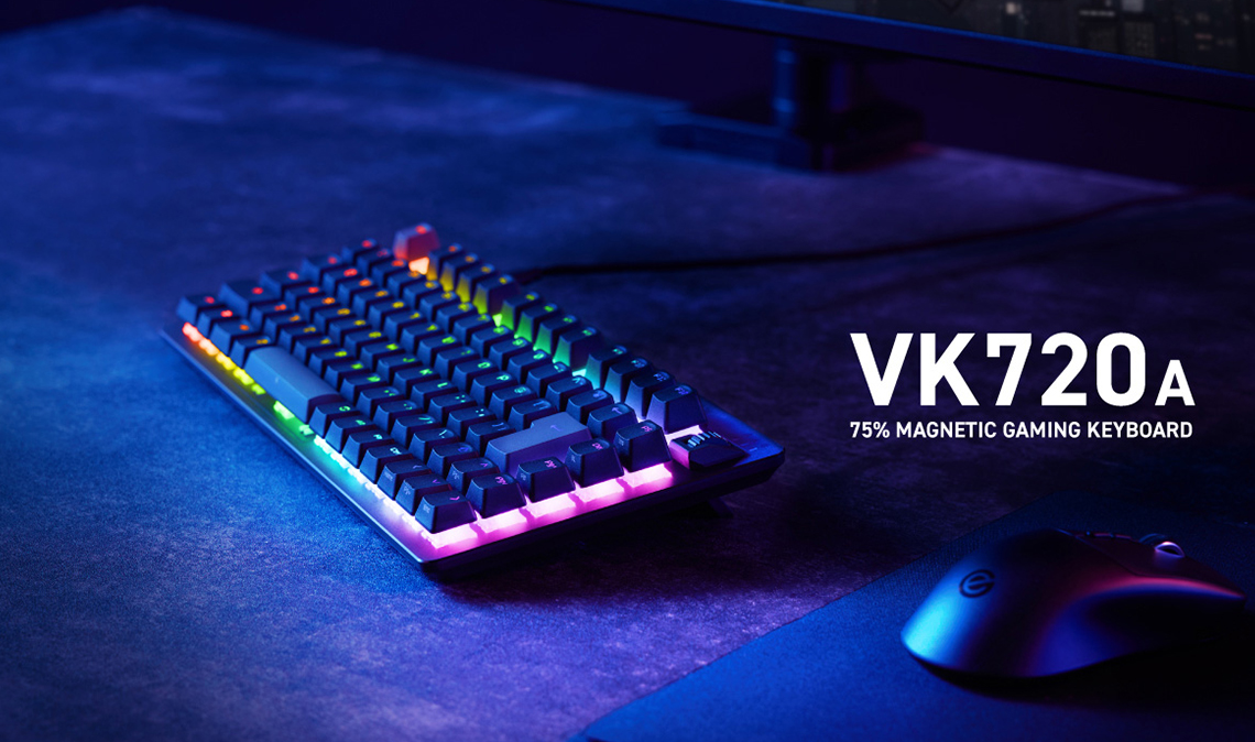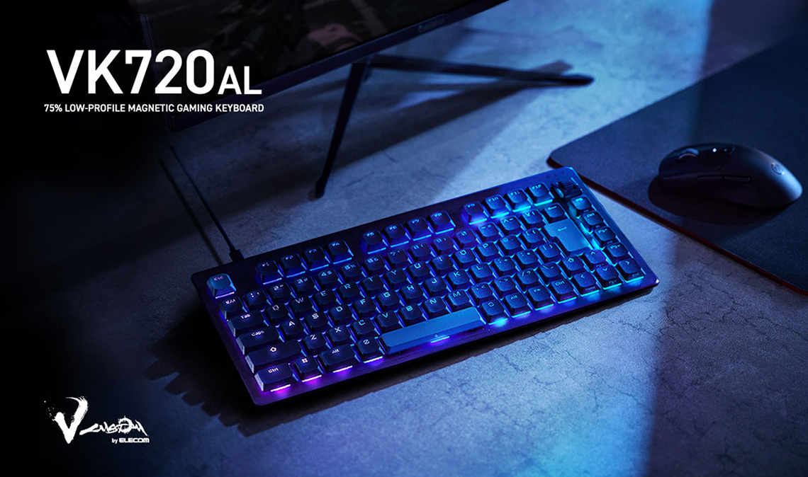 ラピッドトリガー対応の75%サイズのゲーミングキーボード。マウスを操作するためのスペースを確保しやすいテンキーレスキーボードよりもコンパクトなサイズ感が特長。