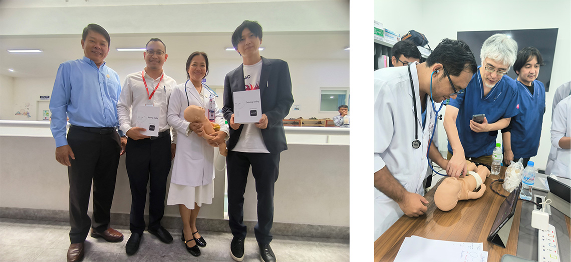 2025年10月、テチョサンテピアップ国立病院に2台を寄贈しました。首都プノンペンに位置する同病院は、2023年に開院され、カンボジア最大規模の病床数を持ち、若手医師の教育にも重点を置いています。認定NPO法人あおぞらと連携し、これからのカンボジアの新生児医療を支えていく若手新生児科医の育成現場において、臨床現場を想定した実践的なトレーニングの補助機器として活用される予定です。