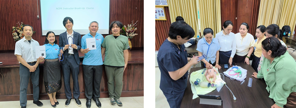 2025年10月、ラオス国立保健科学大学医学部およびマホソット病院(教育病院)に3台を寄贈しました。両団体では、医学生やインターンシップの方を対象に基礎から実践まで段階的に新生児蘇生法に関する技術を学ぶための講習を実施しており、本製品が導入されています。将来のラオスの医療を担う人材が、在学中からより実践に近いレベルのトレーニングに触れる機会を得ています。認定NPO法人あおぞらと連携のうえ、安全安心な出産のための医療人材育成プロジェクトの新生児蘇生法研修において活用されました。