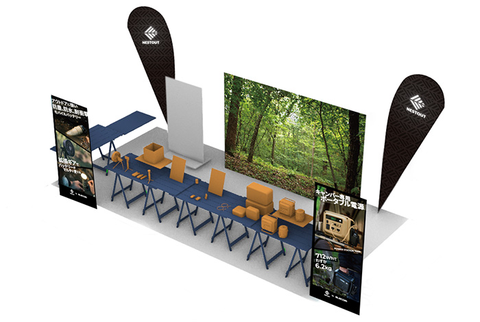 アウトドアシーンでは、普段よりも気温や湿度の変化、水濡れ、衝撃など、電子機器を取り巻く環境がより一層過酷になります。当社では、アウトドア向けブランド「NESTOUT(ネストアウト)」シリーズより、JIS保護等級IP67の防水・防塵性を搭載したモバイルバッテリーやアウトドアに最適なサイズのポータブル電源を展示します。