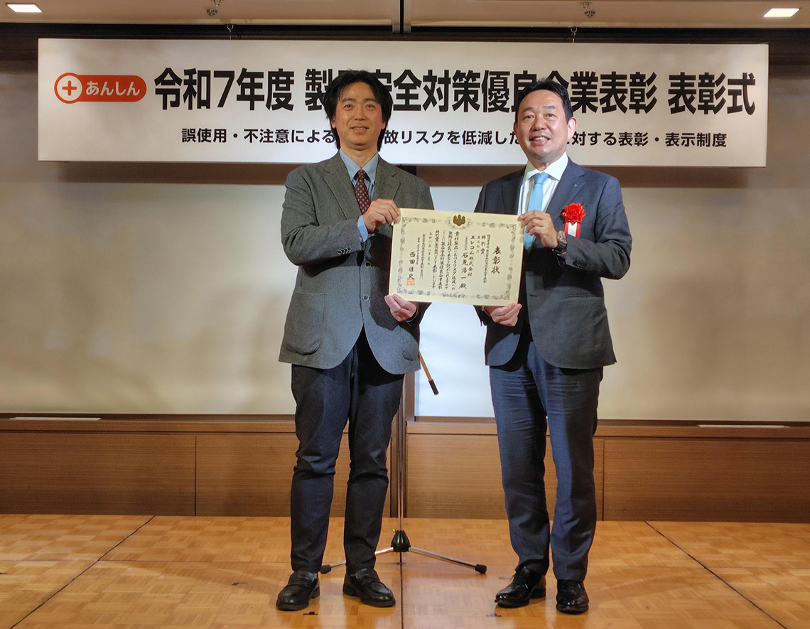 エレコム株式会社(本社:大阪市中央区、取締役社長執行役員:石見 浩一)は、高温や過電流を検知すると自動で電流を遮断するブレーカーを内蔵した当社製のUSBケーブルが、経済産業省主催の令和7年度「製品安全対策優良企業表彰(PSアワード)」に新設された「製品部門(+あんしん)」を受賞したことをお知らせします。