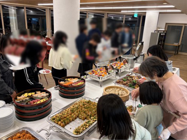 神奈川県横須賀市にある児童養護施設「しらかば子どもの家」より、約30名の子どもたちを「レクトーレ葉山 湘南国際村」へ招待しました。卓球やボードゲーム、シアタールームなど、冬でも楽しめる室内アクティビティを通じて、エレコムグループの従業員と交流。夕食は、海の幸を中心としたビュッフェ形式で用意し、食事を満喫していただきました。