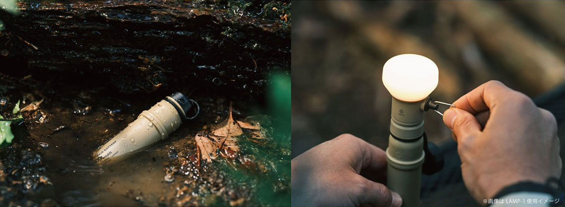 様々なモバイル端末の充電はもちろん、別売りの専用ギアをモバイルバッテリー本体に取り付けることで、宿泊を伴うキャンプでは必須のLEDランタンとしても活躍します。