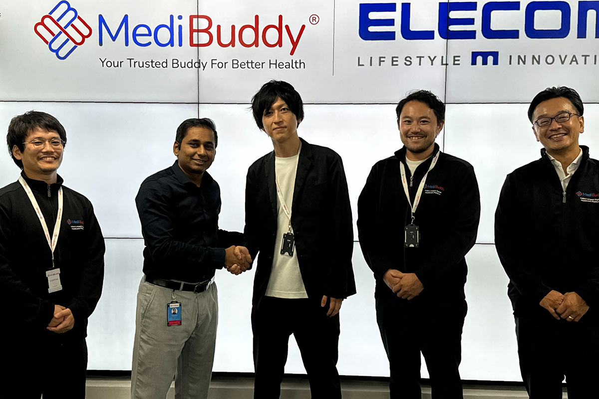 葉田: まさにそのとおりです。たとえばインドでは、日本と比べて医師の数が非常に少なく、人口1万人あたり8人しかいないと言われており、医療現場は常に人手不足。だから病院に行かなくてもスマートフォンやネットを使って診療が受けられる「遠隔医療サービス」がかなり普及しています。しかも、この分野の市場は2025年には日本円で約8,500億円になるという予測もあります。そのような背景があり、インドで急増している糖尿病をはじめとした生活習慣病に対応するため、現地の「メディバディ」というヘルスケア企業と2023年から協業し実証調査を始めました。「メディバディ」はオンライン診療から薬の配送、在宅検査、メンタルヘルスの相談、手術のサポートまで幅広い医療サービスを提供しています。提携している医師は12万5千人以上、病院や薬局、検査センターも何千とあり、まさにインド全土をカバーする大規模なネットワークを持っています。そこでエレコムは、BluetoothやWi-Fi機能をもった体重計や血圧計といったヘルスケア機器を活用して、利用者の健康データをメディバディのアプリに自動で記録できるようにしました。この仕組みを使って、個人の体調や生活習慣に合わせた予防プログラムをインドで展開しようとしています。この取り組みが「医療と生活をつなぐ橋渡し」になると信じています。