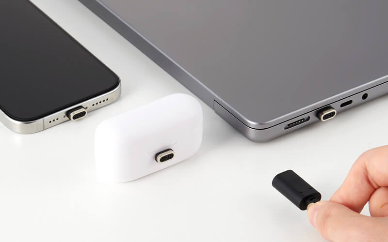 マグネットコネクターをデバイスのUSB Type-Cポートに装着しておくだけで、ケーブルやアダプターを簡単に着脱できる「ピタッとマグネットケーブル」。片手かつノールックでデバイスにケーブルを接続でき、ストレスなく使える便利な製品です。