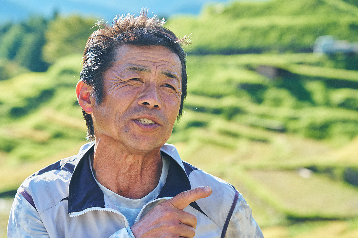 「今、常時この広大な棚田の管理に携わっているのは、9人ほどしかいません。しかも平均年齢は70代半ば。一人だけ20代の若者がいますが、その次に若いのは私。60代の私がここでは"若手"なんですよ。ここは、水の管理一つとっても、3系統ある水源から黒いパイプを引いて、一枚一枚の田んぼに水を配って回らなければいけません。しかも水量は一定じゃないから、それを人が調整しないといけない。また獣害被害も年々ひどくなっています。イノシシや鹿、猿がやってきて、収穫直前に、一晩で全滅させられることだってある。その悔しさは言葉になりません」