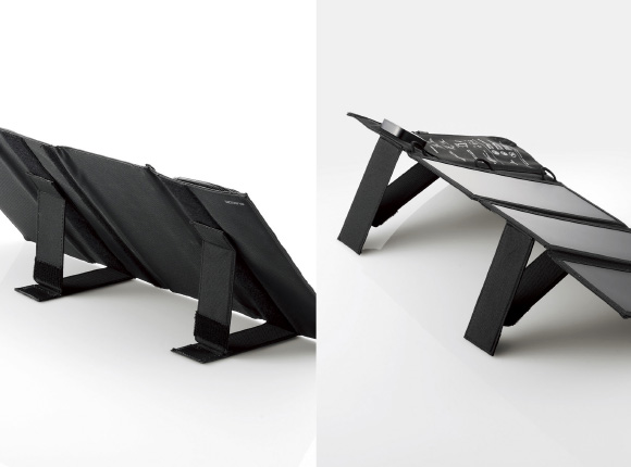 太陽に向けて最適な角度で光を当てる事ができるスタンドを背面搭載。発電効率を高めます。