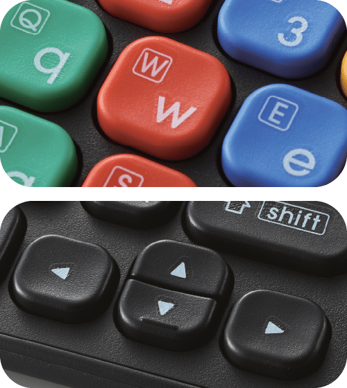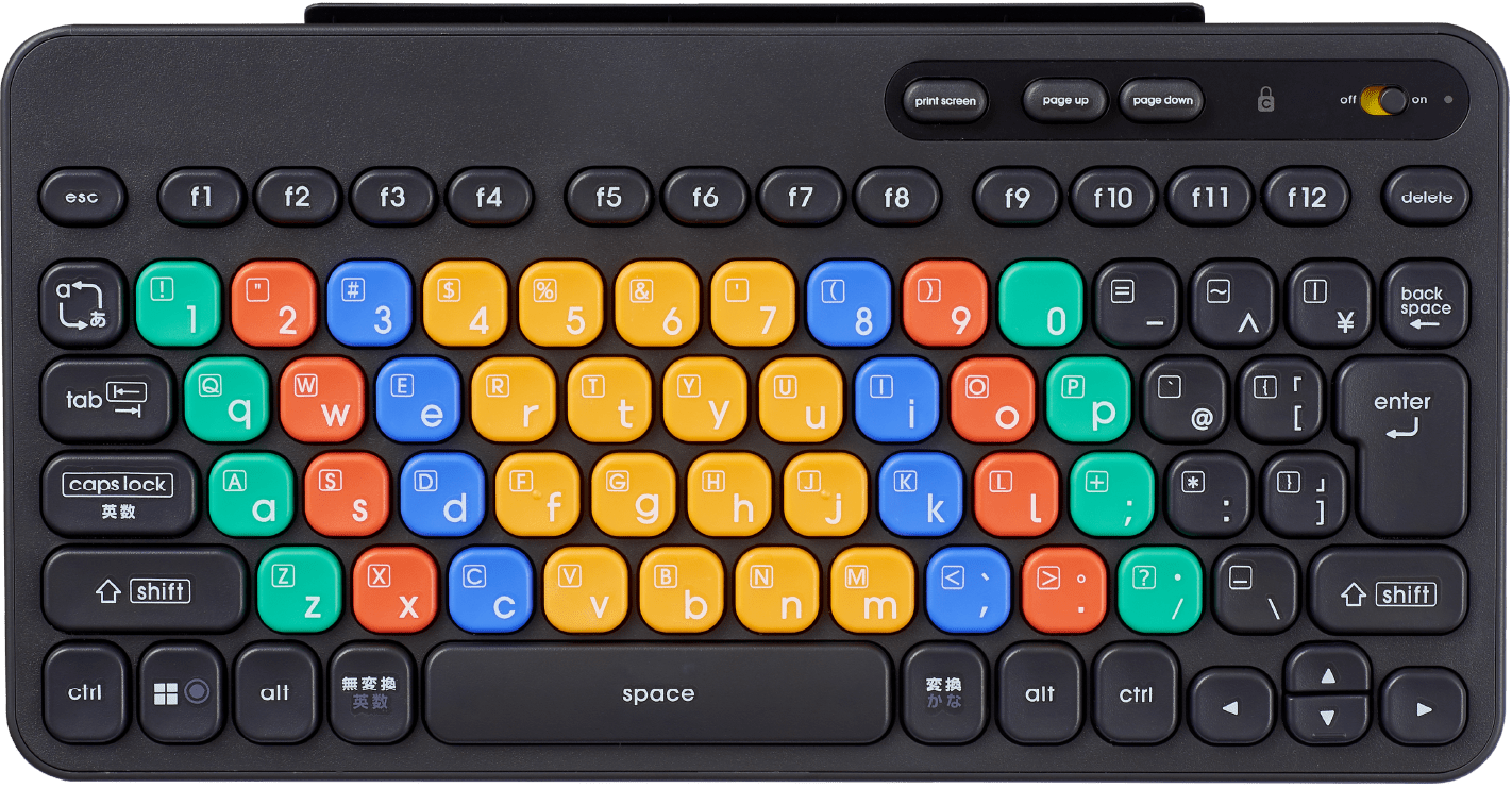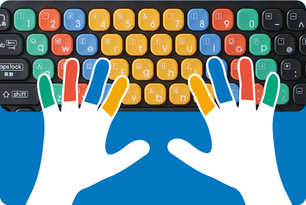 原色に近くわかりやすい配色で、キーを打つ指が楽しく覚えられます。