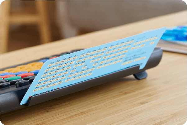 背面のカードスタンドに付属の「ローマ字入力サポートカード」を立てることができます。