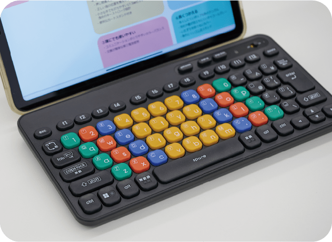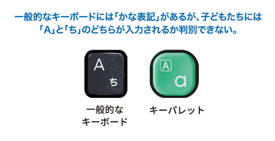 はじめてのキーボードとなるキーパレットには、大人が使うキーボードとはひと味違った、子どもたちが使うことに配慮した数々の工夫がなされている。
