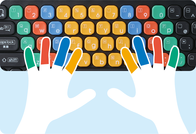 兼宗:このカラフルなキーは、ホームポジションからそれぞれの指が受け持つキーごとに色分けしているんですね。こうすることで、指導者が指示しやすく、正しいタイピングを身に付けやすいとの配慮です。