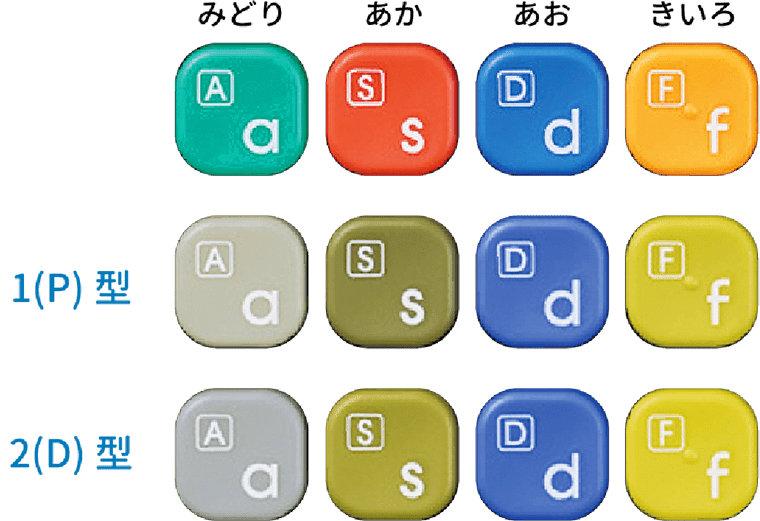 開発者:カラフルで楽しいカラーにしたことはもちろんですが、その色選びにもこだわっています。暖色と寒色を交互に配置することで、色の識別がしにくい子も判別しやすくしています。また、「みどり あか あお きいろ」と、「この色」といえば間違いなく意思疎通ができるような色を選択しました。