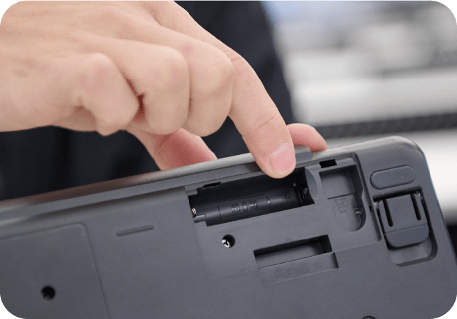 開発者:子どもの頃って、家電製品の電池カバーが開けにくかったですよね。指の腹ではなくツメの先端を突き刺さないといけなかったり、指一本だと力が足りなくて開けられなかったりして。そこで、キーパレットでは、指を2~3本かけて開けられるよう形状を変更しました。また、電池を入れる方向を間違えないよう、電池カバーの内部は形状にも工夫をしています。小さな子でもひと目でわかるよう専用アイコンをデザインしたり、間違った入れ方をしてしまった時も電池受けの部品が壊れないよう、穴の形状にもひと工夫したりしています。