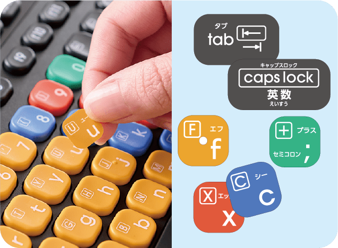 アルファベットを読めない子どものために、フリガナ付きのシールも用意。