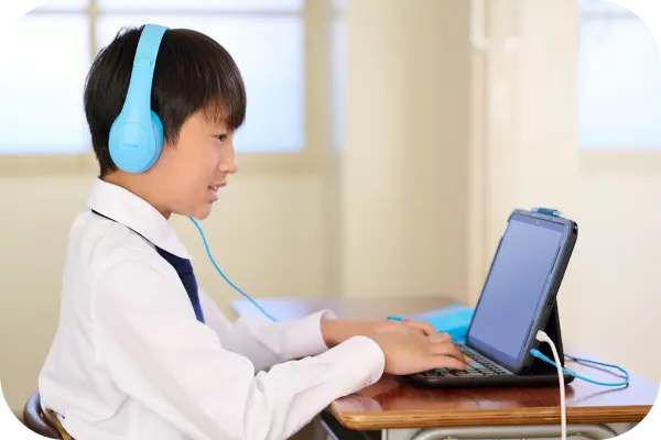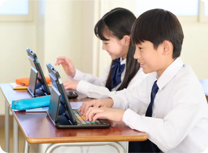 子どもたちが長期期間使うことを考えて高い耐久性を備えました。落下での破損や、キーボード側の水濡れ対策を行い、いたずらにも強い構造設計です。