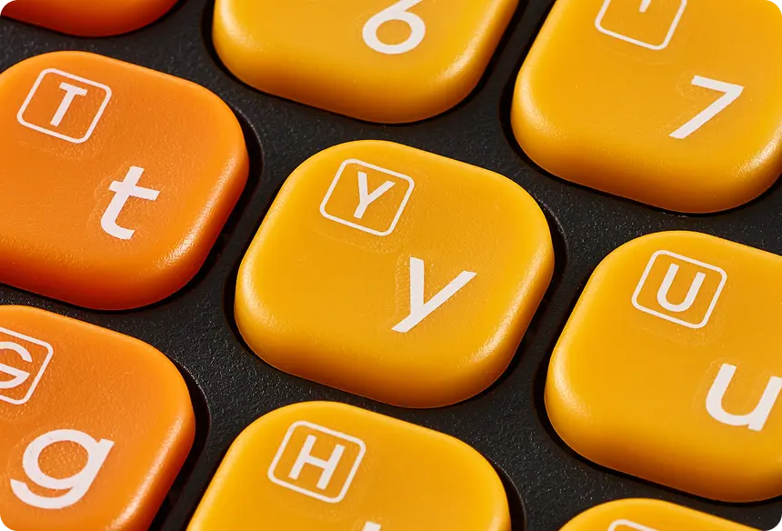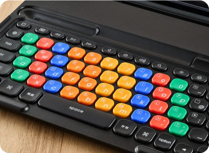 原色に近い分かりやすい配色で、キーを打つ指が楽しく覚えられます。色の判別が苦手な色覚特性のある方でも、色の違いを見分けやすいカラーバランスに調整しています。
