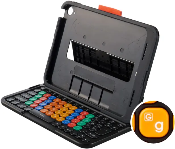 ケースとキーボードはワンタッチで分離でき、iPadケース単体でも使うことが出来ます。カメラ機能の使用時や校外学習の際は、軽快に持ち運べるため学習に集中できます。衝撃や砂埃でキーボードを壊す心配もありません。